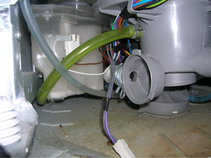 Чтобы заменить помпу, потребуется отсоединить от нее кабель, трубку, датчик воды. Поломанная деталь достается и на ее место устанавливается новая.